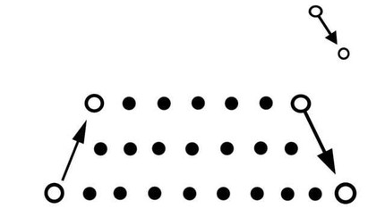 Принцип нисхождения первичной линии (структурный остов М.), лежащей в основе большинства мелодий, отражает действие специфических для М. линеарных процессов: проявление энергии в движениях мелодич. линии и разряд её в конце, выражающийся в заключит. спаде; происходящее при этом снятие (изживание) напряжения даёт ощущение удовлетворения, угасание мелодич. энергии способствует прекращению мелодич. движения, окончанию М. Принцип нисхождения обрисовывает и специфические, «линеарные функции» М. (термин Л. А. Мазеля). «Звучащее движение» (Г. Грабнер) как сущность мелодич. линии имеет своей целью конечный тон (финалис). Начальное средоточие мелодич. энергии образует «зону доминирования» господствующего тона (второй опоры линии, в широком смысле — мелодич. доминанты; см. звук е2 в примере выше; мелодич. доминанта не обязательно находится на квинту выше финалиса, она может отстоять от него и на кварту, терцию). Но прямолинейное движение примитивно, плоско, эстетически малопривлекательно. Художеств. интерес составляют всевозможные его расцвечивания, усложнения, обходные пути, моменты противоречия. Тоны структурного остова (осн. нисходящей линии) обрастают ответвляющимися ходами, маскирующими элементарность мелодич. ствола (скрытое многоголосие):