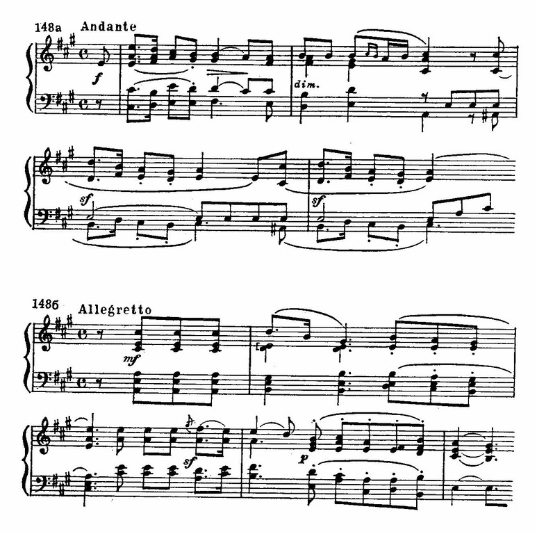 В некоторых деталях фортепианного изложения — в отборе регистров, тембра, в простоте гармонических последований и всей фактуры в целом — есть близость к звучанию гитары, одного из наиболее распространенных в те времена бытовых инструментов: