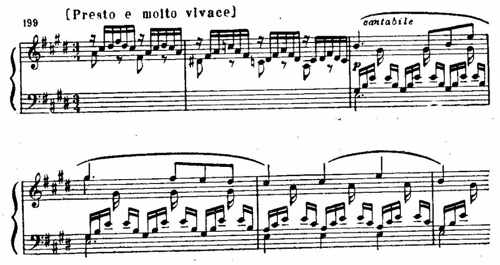 Пьеса № 15, E-dur, Presto е molto vivace передает состояние упоенности, лирической восторженности.