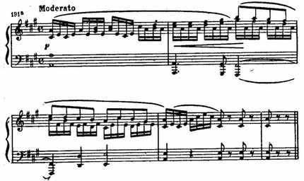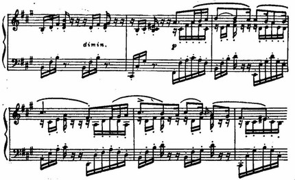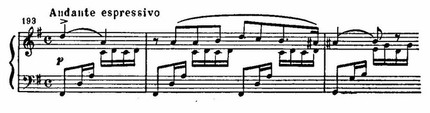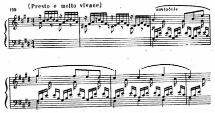 В вольное течение мелодии неоднократно вклиниваются прелюдийного типа пассажи вступления, что вносит в эту стройную трехчастную форму характер импровизационности.