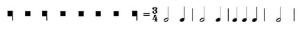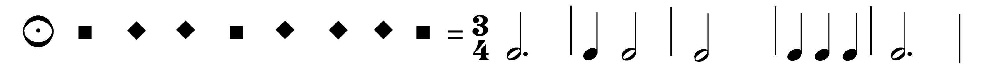 Постепенно для обозначения семиминимы и более мелких длительностей утвердились чёрные нотные знаки, а для соответствующих фузе и семифузе пауз — первые из двух знаков. Эта система знаков составила основу совр. системы нотного письма. Уже в 15 в. нередко применяли округлённую запись нот, в 16 в. она перешла и в нотную печать. К концу 16 в. повсеместно одержало верх соподчинение длительностей в отношении l: 2; это обозначило отказ от М. н. и переход к совр. системе нотной записи.