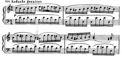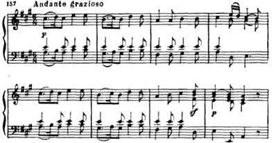 В финальной 6-й вариации выдвигается на первый план присущее теме танцевальное начало. Таким образом, все вариационное развитие в первой части ля-мажорной сонаты ведет от лирической песенности к танцевальности.