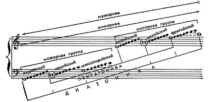 Однако понятие Н. л. в значит. мере условно. Слово «натуральный» (в общем смысле — «естественный», «соответствующий природе») здесь означает «данный природой» (ср. «натуральный звукоряд», «натуральные валторны»), не видоизменённый, не искусственный (ср. противопоставление: «натуральные» и «искусственные» флажолеты). В Н. л. натурален диатонизм, к-рый понимается как ладовая первооснова. Отсюда различие в европ. миноре между «натуральным», первоосновным звукорядом, указываемым нормативными ключевыми знаками, и «искусственным» вводным полутоном, применяемым систематически, но не уравниваемым в правах с тонами Н. л. Но такое противопоставление действительно лишь для европ. муз. культуры; восточные лады с увелич. секундой по существу столь же «природны», т. е. натуральны, как и вообще все лады народной музыки (в народных ладах всё природно, всё — только основа, без наслоений на неё). (См. Индийская музыка.) С этой точки зрения нельзя не отнести к Н. л., например, обиходный лад (G-A-H-c-d-e-f-g-a-b-c1-d1), в котором звуки, образующие уменьшенную октаву (Н-b), в равной мере натуральны (см., напр., 3-е соло дьяка из 2-го действия оперы «Ночь перед Рождеством» Римского-Корсакова), а также и «хроматизм вразбивку» (термин А. Д. Кастальского) в рус. нар. музыке. Отсюда возможность понимания и совр. 12-ступенной системы как натуральной, т. е. не связанной с альтерацией звуков 7-ступенной системы. «Изучение крестьянской музыки… привело меня… к совершенно свободному распоряжению каждым отдельным тоном нашей хроматической двенадцатитоновой системы», — писал Б. Барток. Однако неправомерно называть эту систему 12-ступенной диатоникой, т. к. это противоречило бы смыслу слова «диатоника».