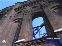 Пятиэтажное здание хранилища, построенное в ХІХ веке, начало гореть