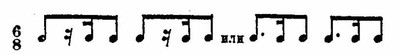 К древнему слою принадлежат также веснянки; им свойствен пунктирный ритм, который Григ обычно видоизменял так: