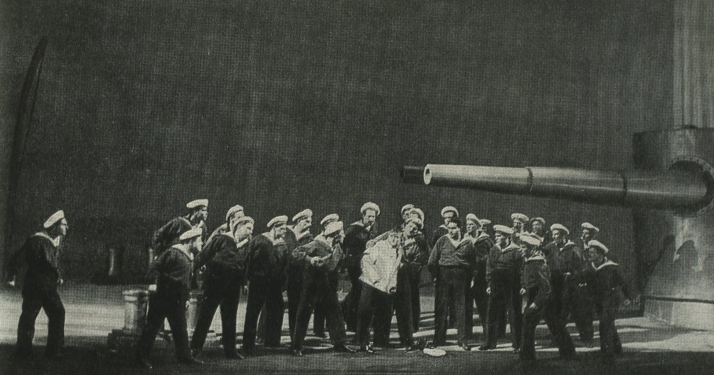Начальник караула Вакулинчук взволнованно призывает друзей: — Братья, помните клятву, в своих не стрелять! Взбешенный Гиляровский выхватывает у Вакулинчука винтовку и стреляет в него. Раненый Вакулинчук падает за борт. Матросы набрасываются на офицеров, разгорается схватка. Ожесточенная борьба кипит на палубе корабля. Матюшенко убивает Гиляровского, матросы сбрасывают его тело в воду, за борт летят и другие офицеры. Струсивший мичман Алексеев спешит сорвать с себя погоны. Вносят вытащенного из воды Вакулинчука. Рана его смертельна. Перед тем как умереть, он призывает потемкинцев плыть в Одессу, на помощь революционным рабочим.