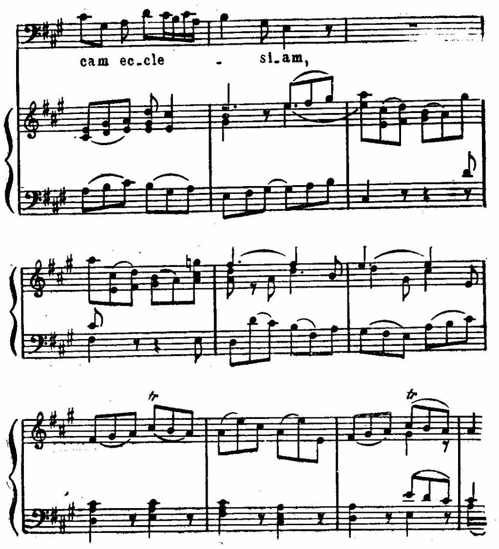 Помимо Магнификата, Бах обращался к другим жанрам культовой музыки на латинские богослужебные тексты. Во второй половине 30-х годов в Лейпциге он написал не менее пяти «Латинских месс». В ту пору богослужение при Саксонском королевском дворе совершалось по католическому обряду, и четыре краткие мессы — F-dur, A-dur, g-moll и G-dur — предназначены были непосредственно для исполнения Королевской капеллой в Дрездене. Музыка их в основной части заимствована композитором из ранее написанных кантат. Что касается номеров, заново сочиненных для этих произведений, то там есть изумительно красивые страницы, особенно в F-dur'ной и A'dur'ной мессах.