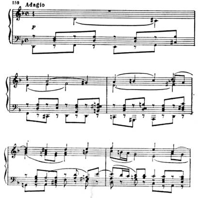 Такое постепенное хроматическое понижение тональностей и ходы басов на тритон в момент вступления уменьшенного септаккорда производят впечатление все большего погружения. Это изумительный и редчайший в музыке XVIII века пример колористического использования гармоний.