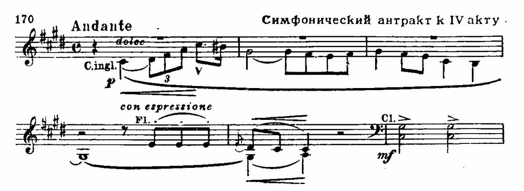 Атмосфера настороженной тишины гениально передана в оркестровом вступлении. Тоскливая мелодия английского рожка сопровождается скорбным вздохом флейт; позже вступающая «пустая» квинта у кларнетов звучит неумолимым приговором: