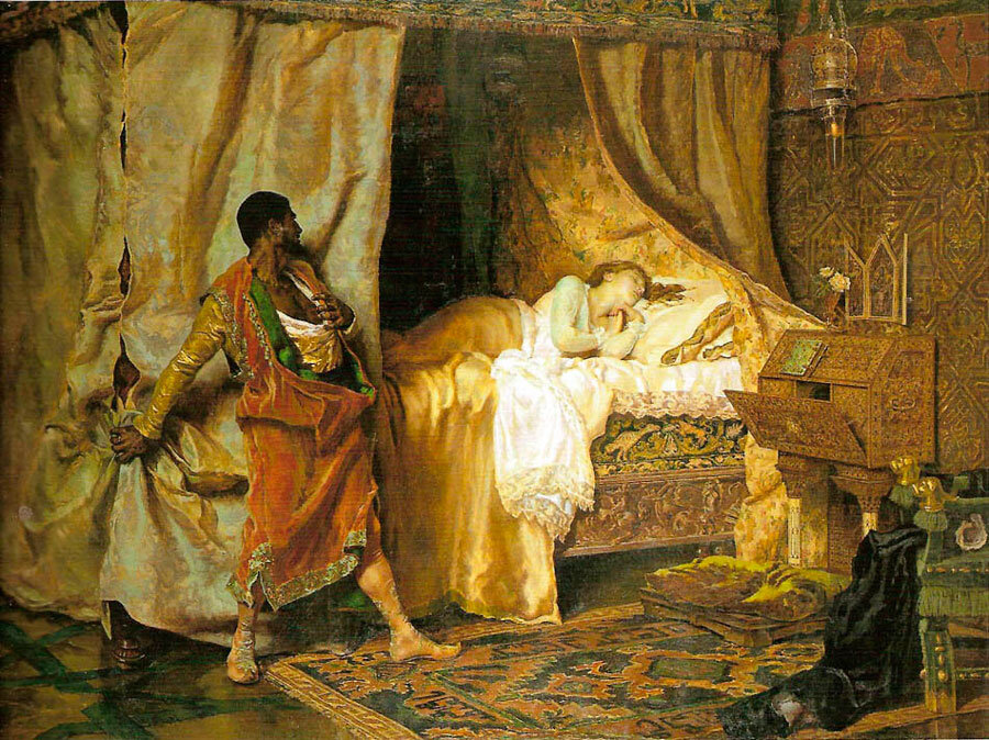Перед лицом зрителей его оправдывает только подлинность внутренней трагедии, которую Верди с такой страстью извлекает на поверхность, только искренность слёз человека с тёмным цветом кожи, убивающего белокурую женщину, его идеал. Этот парадокс, граничащий с гротеском, является результатом нового оперного направления у Верди и порождает образ, идущий, конечно, от старика Шекспира, но и очень созвучный последним десятилетиям XIX века.
