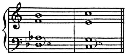 Параллелизм (от греч. parallnlos — параллельный, букв. — находящийся или идущий рядом) — движение двух и более голосов многоголосной полифонич. или гомофонной муз. ткани с сохранением между ними того же интервала или интервалов («открытый» П.), а также нек-рые формы движения голосов в одну сторону («скрытый» П.). П. следует отличать от удвоения того же голоса в октаву и даже в несколько октав, постоянно используемого в проф. музыке. П. характерен для определённых видов нар. иск-ва нек-рых народов, муз. жанров (напр., рус. и укр. кант). Известен с древнейших времён; самые ранние формы проф. многоголосия строились на параллельном движении голосов, причём применялись П. не только терций, но также квинт, кварт и даже секунд (см. Органум). В последующее время в проф. музыке находил применение гл. обр. П. терций и секст. П. октав и квинт в 13–14 вв. был запрещён муз. теорией как нарушавший самостоятельность движения каждого из голосов. В 18 в. было установлено одно исключение из этого правила — параллельные квинты допускались при разрешении увеличенного квинтсекстаккорда VII ступени в тонику (т.н. «моцартовские квинты»):