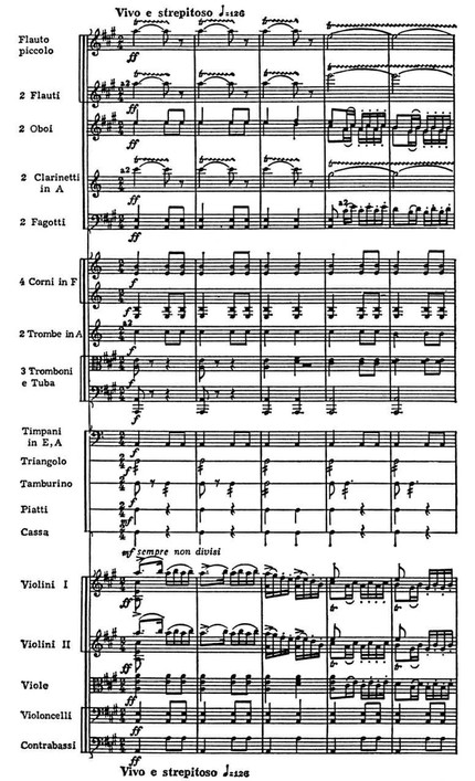 Расположение инструментов в партитуре для большого симфонического оркестра