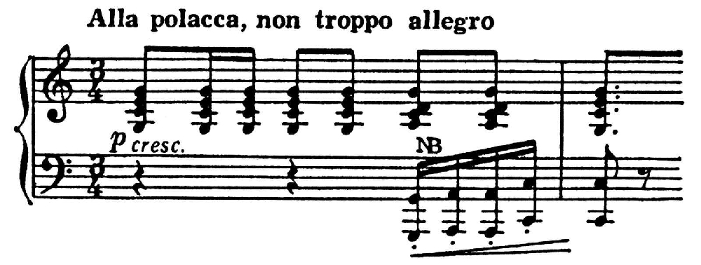 Порой она служит для воспроизведения звука колоколов — у Римского-Корсакова, Дебюсси. Иногда П. используется и в аккордике («свёртывается» в неполный пентаккорд):