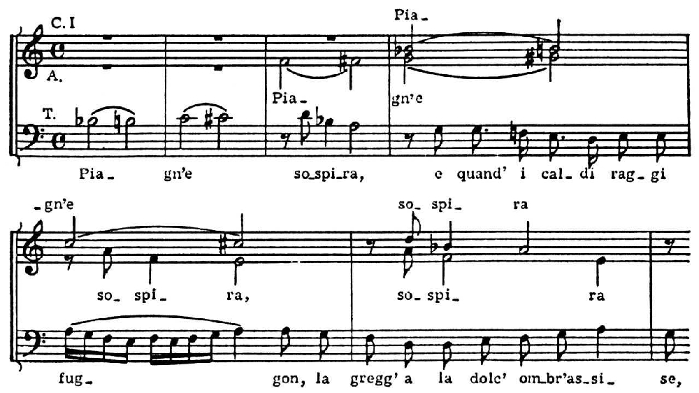 Малые формы в П. строгого стиля находились в зависимости от текста: внутри строфы текста развитие происходило при посредстве повторения (имитации) темы, смена же текста влекла за собой обновление тематич. материала, к-рый, в свою очередь, мог излагаться имитационно. Продвижение муз. формы происходило по мере продвижения текста. Такая форма особенно характерна для мотета 15–16 вв. и получила название мотетной формы. Так построены и мадригалы 16 в., где изредка возникает и форма репризного типа, напр. в мадригале Палестрины «I vaghi fiori».