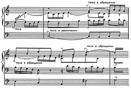 Это положение особенно важно для баховской фуги, где противосложение нередко претендует на роль второй темы. В общей структуре фуги, так же как и в сфере тематизма, Бах отразил главнейшую тенденцию своего времени — тенденцию к сонатности, подходившей к своему классич. этапу — сонатной форме венских классиков; ряд его фуг приближается к сонатной структуре (Kyrie I мессы h-moll).