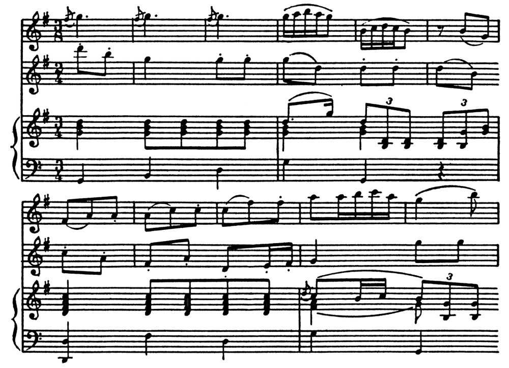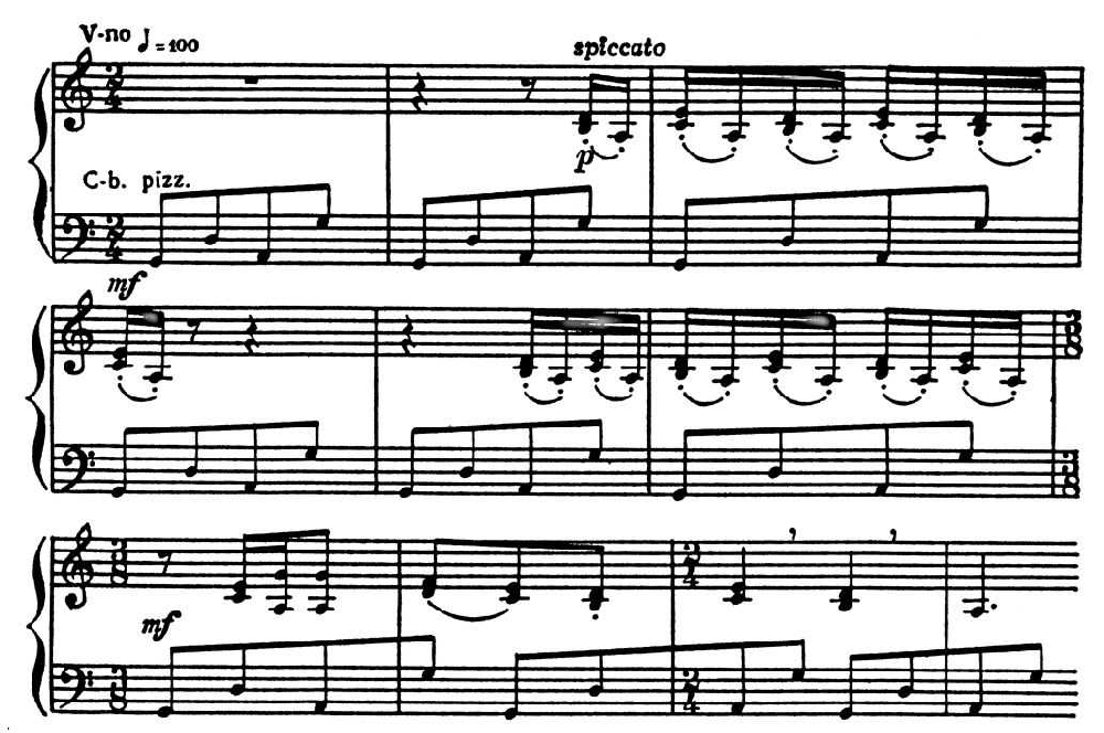 Более распространены краткие полиметрич. эпизоды, встречающиеся в неустойчивых моментах классич. форм, в частности перед кадансами; как игровые элементы они в нек-рых случаях используются в скерцо, где складываются чаще всего на основе пропорций гемиолы (см. пример из 2-й части 2-го квартета А. П. Бородина).
