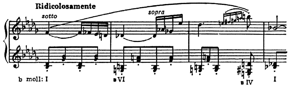 (В П. к. из приведённой пьесы С. С. Прокофьева тонике предшествует гармония тритоновой — IV высокой ступени, принадлежащая к хроматич. системе.)