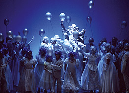 Пражская государственная опера - театр, ориентированный в большей степени на международный репертуар, преимущественно итальянский: оперы Верди и Пуччини составляют его основу, хотя за 12-летнюю историю труппы было поставлено немало и национальных опер, и произведений современных композиторов. Именно с пуччиниевской «Богемой» мне довелось повстречаться в бело-золочёно-малиновом, богато декорированном зале бывшей Немецкой оперы. Постановка Романа Ховенбицера выдержана в аскетичных сине-сизых тонах и отличается минимумом реквизита - сцена практически пуста, слева и справа она ограничена двумя гигантскими плоскостями, которые то сдвигаясь к центру, то немного расходясь к заднику формируют сценическое пространство в зависимости от сюжета - в сцене веселья в Латинском квартале плоскости максимально разведены, в сцене же смерти Мими наоборот, плотно сомкнуты, на секунду размыкаясь только в момент, когда душа героини отлетает в мир иной. Вокальное исполнение центральной женской партии дублируется балетным двойником Мими, причем присутствие балерины весьма существенно - вся драматическая роль как бы поделена между певицей и танцовщицей, по-видимому, олицетворяющей душу бедной белошвейки. Под стать сценографии костюмы героев - ничего не говорящие, никак не персонифицирующие героев современные одежды, так же выдержанные в общей блёклой серо-синей гамме. В таких условиях, когда, честно говоря, глазу не за что зацепиться, вся тяжесть спектакля падает на исполнителей - как на их вокальные, так и актёрские данные. И надо отдать должное, что с этим дела в Государственной опере обстоят неплохо. В наибольшей степени это относится к исполнителю партии Марселя Владимиру Хмело, чей голос - прекрасно сделанный, плотный баритон красивого, густого тембра, а актёрская игра настолько свободна и естественна, что трудно поверить, что на сцене «всего лишь» оперный певец. Достойный ему ансамбль составила и Михаэла Варади (Мюзетта), чьё плотное сопрано вполне подошло бы и для партии Мими. Центральный дуэт - Михал Леготский (Рудольф) и Мария Хаан (Мими) - несколько слабее в вокальном отношении: тенор Леготского скорее характерный, чем лирико-спинтовый, да и верхние ноты выходили порой слегка «петушиными», а сопрано Хаан слишком уж лёгкое для пуччиниевской фактуры. Но в чём не откажешь главным исполнителям (как, впрочем, и всему молодому составу солистов), так это в тонкой актёрской игре, понимании чувств своих героев, благодаря чему спектакль получился действительно о том, о чём повествовали Мюрже и Пуччини - об очаровании молодости и трагической боли первых жизненных ран. В целом же музыкальное исполнение отличалось достаточно высоким уровнем, и не только за счёт солистов - оркестр под управлением Михаэля Кепрта оставил самое приятное впечатление слаженностью своей игры, свежим и трепетным прочтением партитуры.