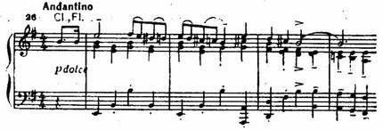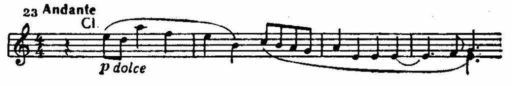 Эта вдохновенная тема характерна для музыки Прокофьева. В ней есть нечто общее и с ранним «Гавотом» из ор. 12, и с танцами из балета «Золушка», написанными в 40-е годы.