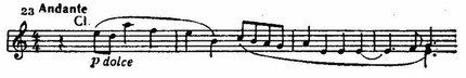 Концерт начинается лирическим вступлением с ремаркой dolce (соло кларнета). Оно напоминает сельские свирельные наигрыши. Мелодия наигрыша чисто русская, широко напевная, в старинном народном ладу и с характерными для Прокофьева чертами «квинтовости», создающей ладовую переменность (Такая же «квинтовость», являющаяся общестилевым признаком прокофьевского мелодизма, свойственна главной теме Пятой симфонии, пентатонического склада побочной теме Седьмой, любовной теме «Ромео и Джульетты», отчасти песне «Океан-море» из музыки к кинофильму «Иван Грозный» и многим другим темам композитора. Здесь Прокофьев в значительной степени развивал традиции Римского-Корсакова (вспомним, например, партию Февронии из «Сказания о граде Китеже»).).