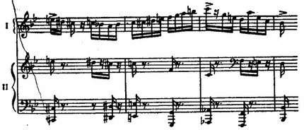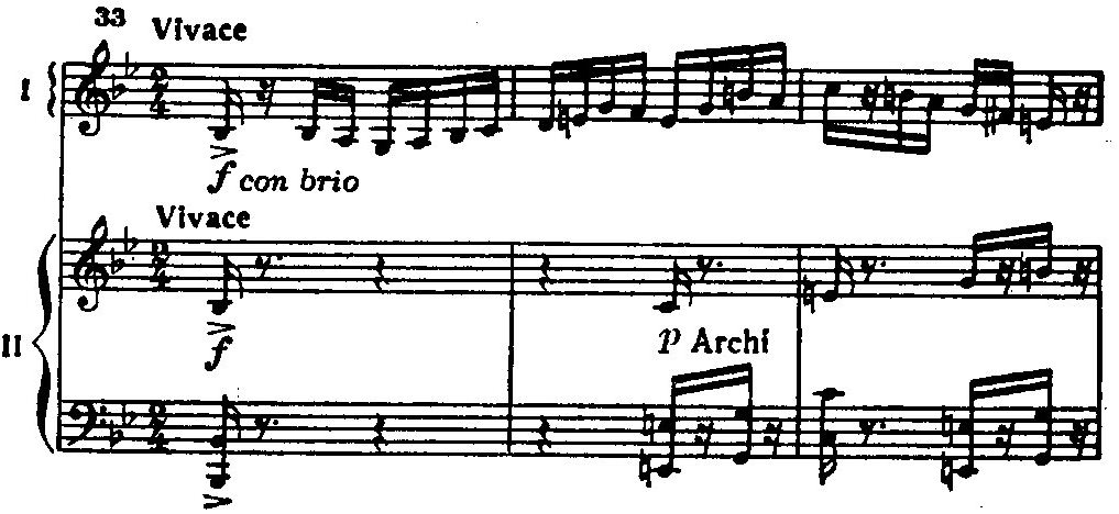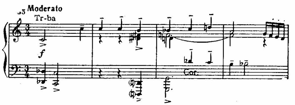 Хотя главная партия воплощает образы властности и несколько жестка по звучанию (диссонансы медных), в ней уже зарождается впоследствии широко развившееся в творчестве Прокофьева лирико-психологическое начало.