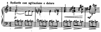 «Отчаяние» (ор. 4) — первое в прокофьевском творчестве выражение трагического начала, эмоций страдания. Воплощая чувство безысходности, композитор использует (также впервые) свой излюбленный прием ostinato — бесконечного повторения интонации из трех хроматически спускающихся звуков. Прием этот действует с гипнотической властностью, и мотив, становясь фоном, усиливает экспрессию возгласов стенания: