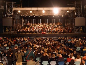 Когда-то сам композитор выразил желание послушать собственную музыку под открытым небом. Мечта осуществилась, когда Пуччини уже не было в живых: 24 августа 1930-ого года на сцене, построенной на сваях, уходивших в воды озера, состоялось представление "Богемы" под управлением однокашника Маэстро по Миланской консерватории Пьетро Масканьи. С тех пор представления пуччиниевских опер в местах, так страстно им любимых, не прекращались. В 1966-ом году, на отвоеванной у озера части пространства, на плавучих мостах построили Gran Teatro all’aperto - Большой театр под открытым небом, который вмещал три тысячи двести человек. Он стал постоянным местом проведения Пуччинивского фестиваля, в этом году пятьдесят шестого по счету. Именно в старом театре звучали голоса Дель Монако и Корелли, Паваротти, Доминго и Каррераса, Ренаты Скотто и Райны Кабаиванской, Гены Димитровой и Кати Риччарелли. Не забудем, что его почтили своим искусством Карла Фраччи и Рудольф Нуреев.