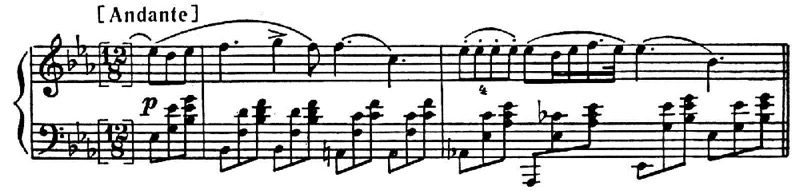 Когда К. объединяет две дуоли, она пишется иногда нотами вдвое длиннее осн. длительностей, напр. К. четвертными нотами в размере 6/8.
