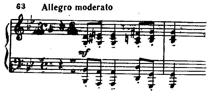 В светлом праздничном финале — Allegro mosso — своеобразие рахманиновского почерка выражено с меньшей определенностью. По общему характеру музыки он близок к традиционным эпическим финалам «кучкистов» и Глазунова, отчасти и Чайковского (русский народный склад особенно ясно ощущается в побочной партии).