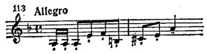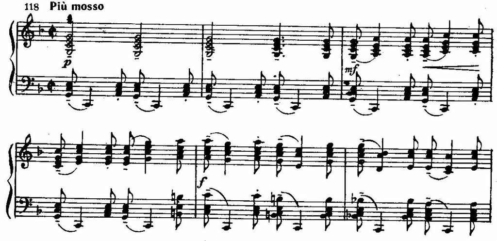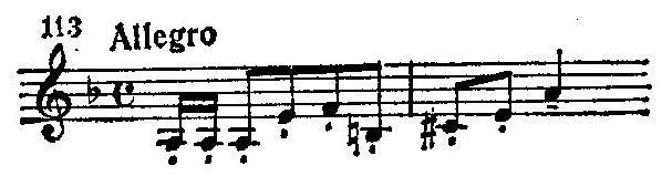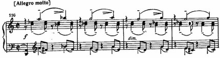 Только в заключение экспозиции (Meno mosso, цифра 45) дан еще один вариант той же темы, в котором сохраняются ее основные очертания, но мелодический рисунок становится более мягким и плавным.