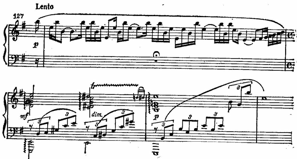 Партии голоса и фортепиано образуют два самостоятельно развивающихся плана, иногда сближающихся и перекрещивающихся, иногда, наоборот, отдаляющихся друг от друга. Так, в последнем такте между поднимающейся в высокий регистр вокальной мелодией и плавно опускающейся вниз линией фортепиано возникает своеобразная «воздушная пустота». Характерно «запаздывающее» окончание голоса, в котором еще продолжается движение после того, как у фортепиано наступает остановка.