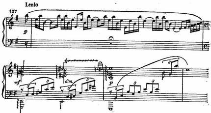 Таков характерный каденционный оборот во вступительном построении, повторяемый еще раз в конце: