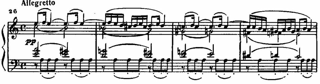 Постепенно характер музыки становится более взволнованным и страстным, короткое, стремительное нарастание приводит к напряженной, но быстро угасающей драматической кульминации, после чего снова звучит тот же мотив, проникнутый чувством тоскливого одиночества.