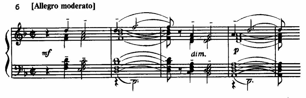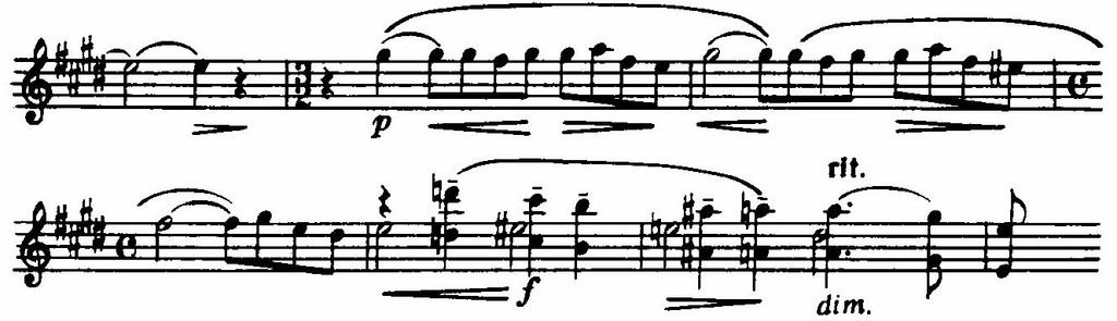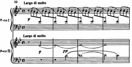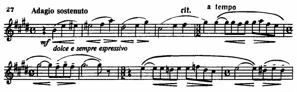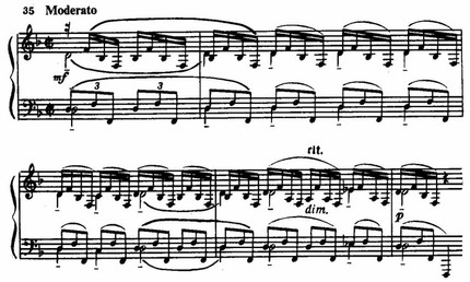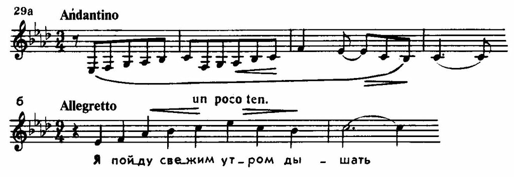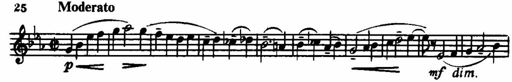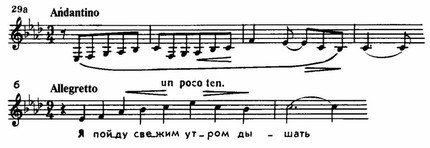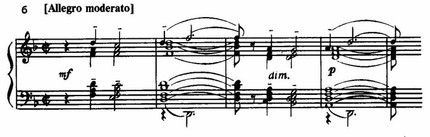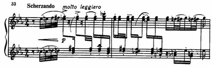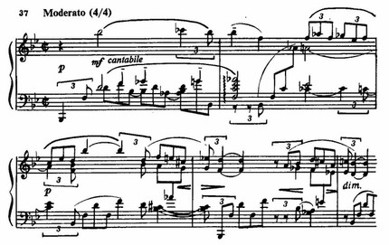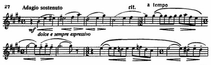 Излагаемая в виде законченного периода тема далее словно истаивает и растворяется в высоком регистре.