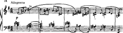 Это связано прежде всего с трепетной взволнованностью темы, построенной на интервалах секунды и терции, разделенных паузами. Они выразительны и сами по себе и на фоне непрерывного движения сопровождающих голосов, также мелодически насыщенных и сосредоточенных в сравнительно узком диапазоне. Но рисунок каждого голоса вполне отчетлив, и это определяет общее впечатление ясности и прозрачности равелевской полифонии.
