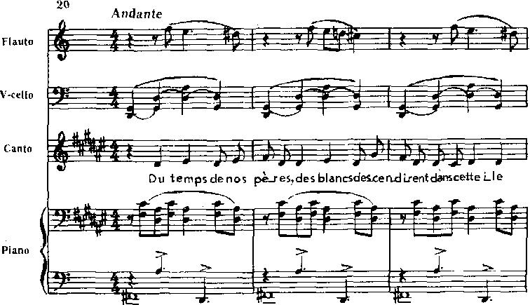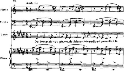 Иные образы раскрываются в номере втором – «Не доверяйте белым». За отчаянным восклицанием – «Ауа! Ауа! Не доверяйте белым!» – следует медленное повествование о прибытии европейцев и последующих трагических событиях. Вокальная мелодия по мере развития сохраняет напевность, но звучит все решительнее, наполняясь гневом. В кульминации у флейты возникают фанфарные интонации (Равель требовал здесь звучания флейты, напоминающего тембр трубы).