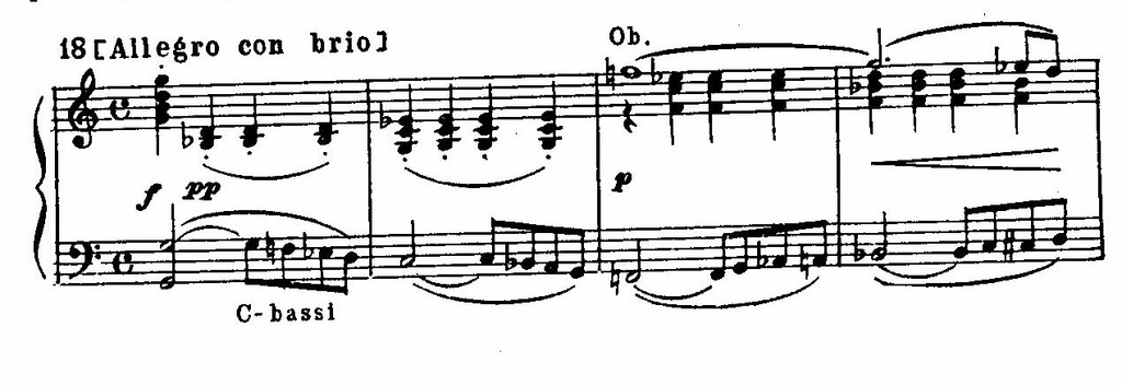 Современников озадачил уже первый аккорд (из небольшого вступительного Adagio) – диссонирующее созвучие, притом не тяготеющее к основной тональности (симфония начинается с доминантсептаккорда к субдоминанте основной тональности). Их слух отметил лишь неожиданное, в начале сочинения, звучание диссонанса. А между тем Бетховен начал с относительно далекой и неустойчивой гармонии для того, чтобы подчеркнуть целеустремленное внутреннее движение на основе гармонических тяготений.