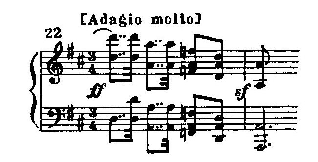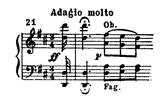 Примечательно появление в роли драматической кульминации мотива, который с полной силой зазвучит в Девятой симфонии: