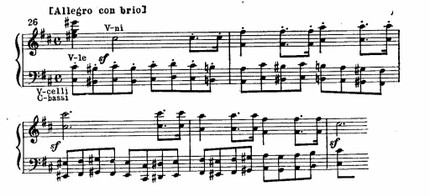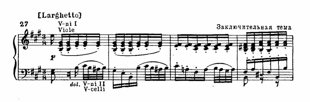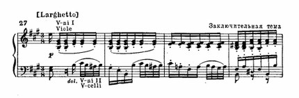 Тема заключительной партии (построенная на том же элементе движения из главной темы, которым завершалась и побочная) также полна внутренних конфликтов и неустойчивости.
