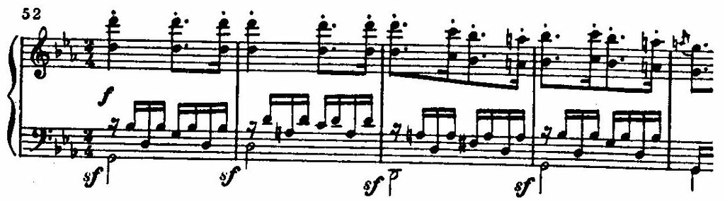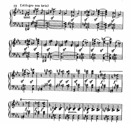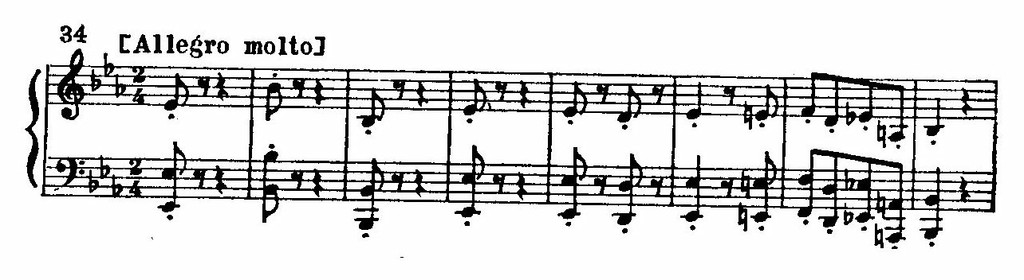 Вся сонатная экспозиция строится как огромная цепь последовательно нарастающих волн. Гребень каждой волны совпадает с началом последующей.