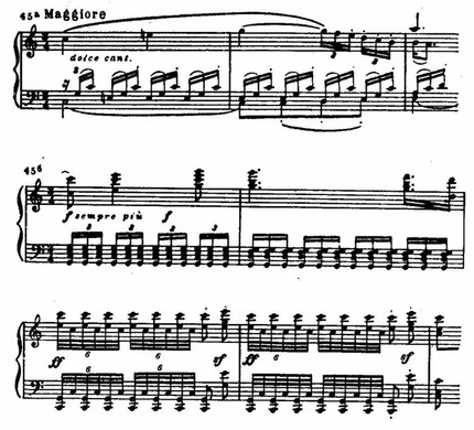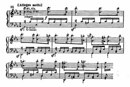 Эту фазу, нарастающего развития проходят все темы. Напряжение неуклонно возрастает, высшая точка приходится на самый конец экспозиции.