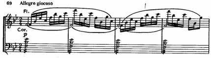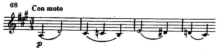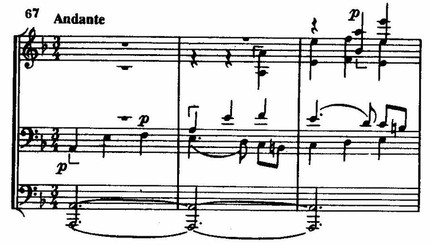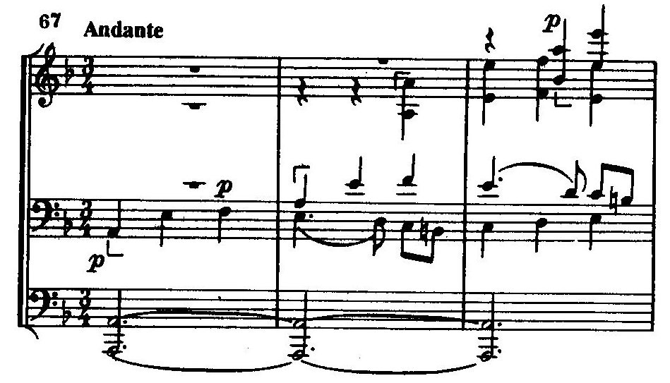 представляет собой пример горизонтально-подвижного контрапункта, на что обратил внимание композитора Танеев. Третья, замыкающая экспозиционный раздел тема,