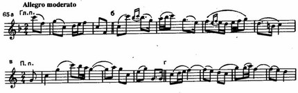 которое дополняется двумя вариациями, причем мелодический рисунок остается в них неизменным, меняется только фактура сопровождения и инструментовка. Вторая тема (которую условно можно считать побочной партией) в строе доминанты, изложенная имитационно со стреттными вступлениями голосов,