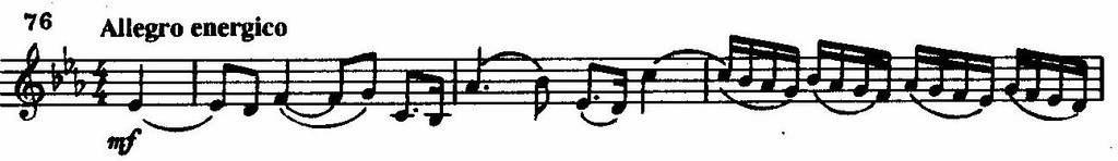 которая далее включается в общее развитие и полифонически сплетается с основными темами сонатного allegro. Главная партия финала изложена в виде фуги, решительная энергичная тема которой