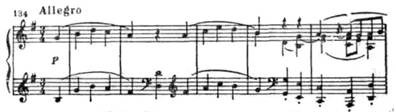 Все темы этой части (главная, связующая и побочная партии) объединяются характерной фигурой из тридцатьвторых, получающей интенсивное драматическое развитие в разработке.