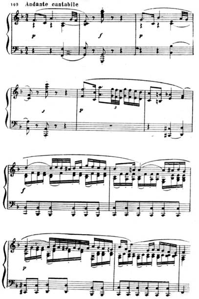 Связующей партии противопоставляются спокойные побочная и заключительная партии:
