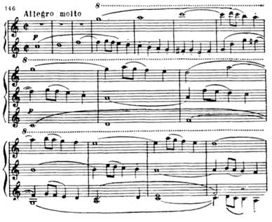 На этих темах строится фуга, представляющая в сонатной форме финала связующую партию. В эту фугу входит и третья тема: