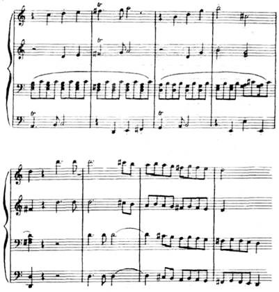 Это способствует целостности и единству цикла. Начальная хроматическая интонация в дальнейшем подвергается развитию. В данном менуэте между крайними частями и средней частью (трио) нет ладотонального контраста.