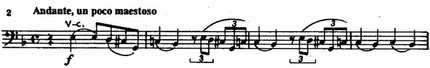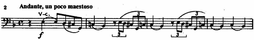 Тематизм, в основе которого лежит уменьшенный септаккорд (в виде терцквартаккорда), а в некоторых дальнейших вариантах крайние звуки мотива-ядра образуют уменьшенную септиму, нередко встречается в музыке декламационного, патетического склада. Взяв этот оборот из общего словаря, Танеев делает его своим. Переменность VII ступени (повышенной — натуральной) закрепляется в темах аналогичного — лирико-философского — характера. Дважды они встречаются в той же тональности — ре минор (квартет 1874 года без ор. и тема фуги из хора «Прометей»); третий пример — совсем поздний, из кантаты № 2.