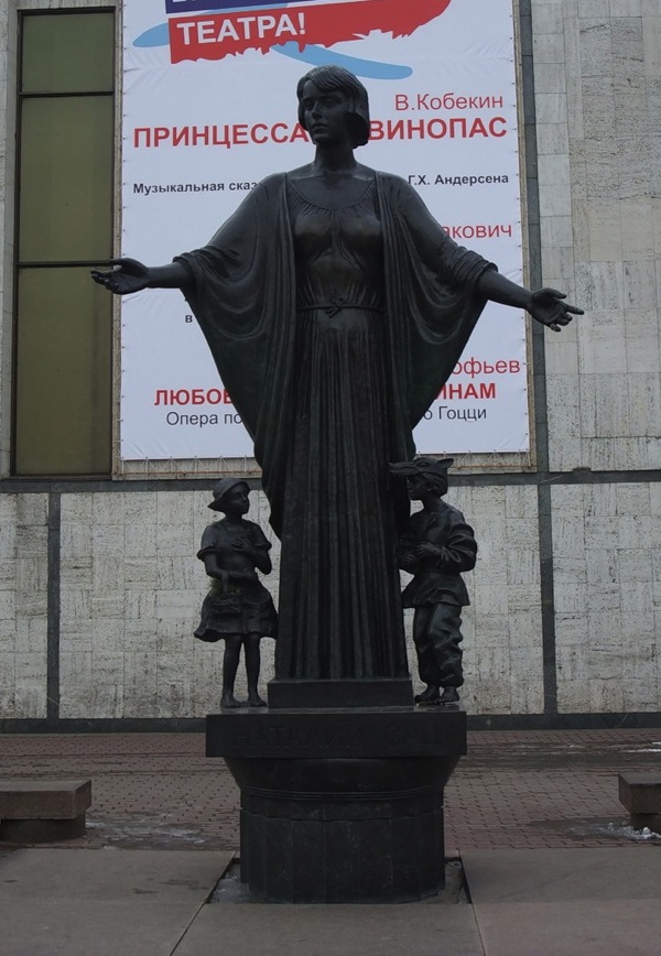 В 2003 году перед зданием театра установлен памятник Н. И. Сац. На памятнике фигура Н. И. Сац изображена с двумя детьми в образах Красной Шапочки и Волка.